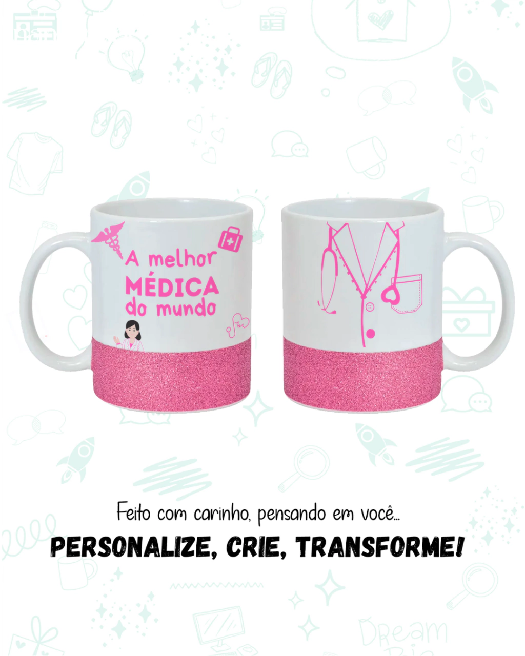 Com um design único, a Caneca Meia Glitter combina a elegância da porcelana com o brilho sutil do glitter, criando uma peça exclusiva e cheia de charme. Personalize com nome, frase ou logo e tenha uma caneca que reflete sua personalidade ou o presente perfeito para alguém especial.